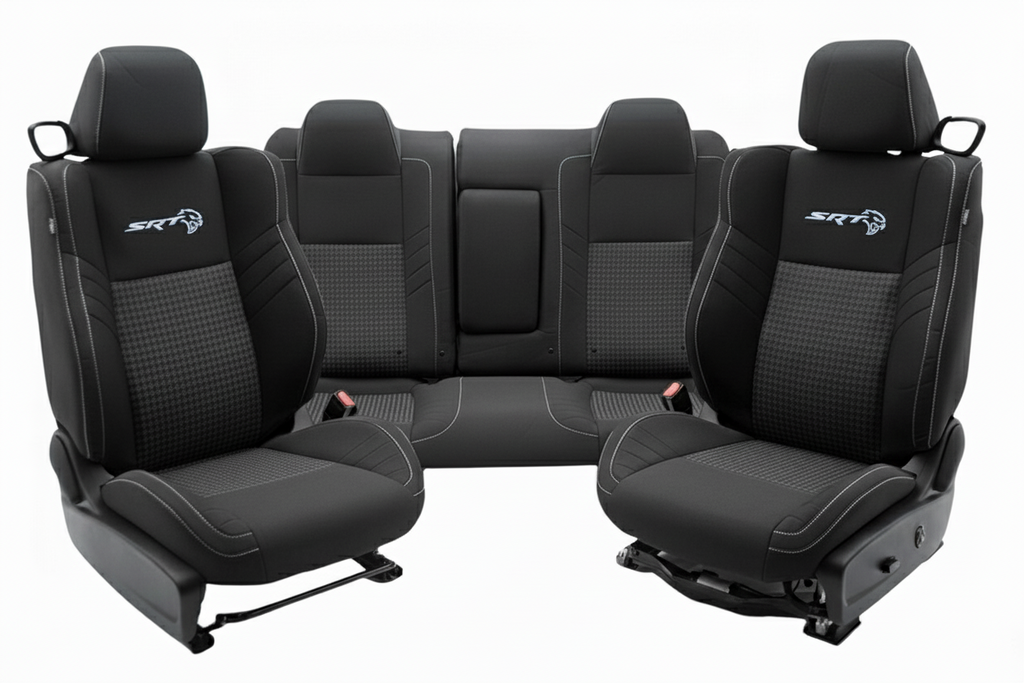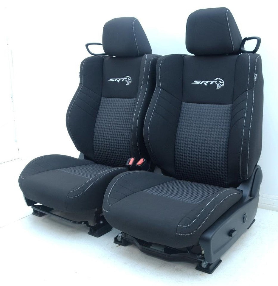 Dodge Challenger SRT Cloth Seats, Driver seat is powered with power lumbar Passenger seat is manual. Rear seats are included, they are black in color with the