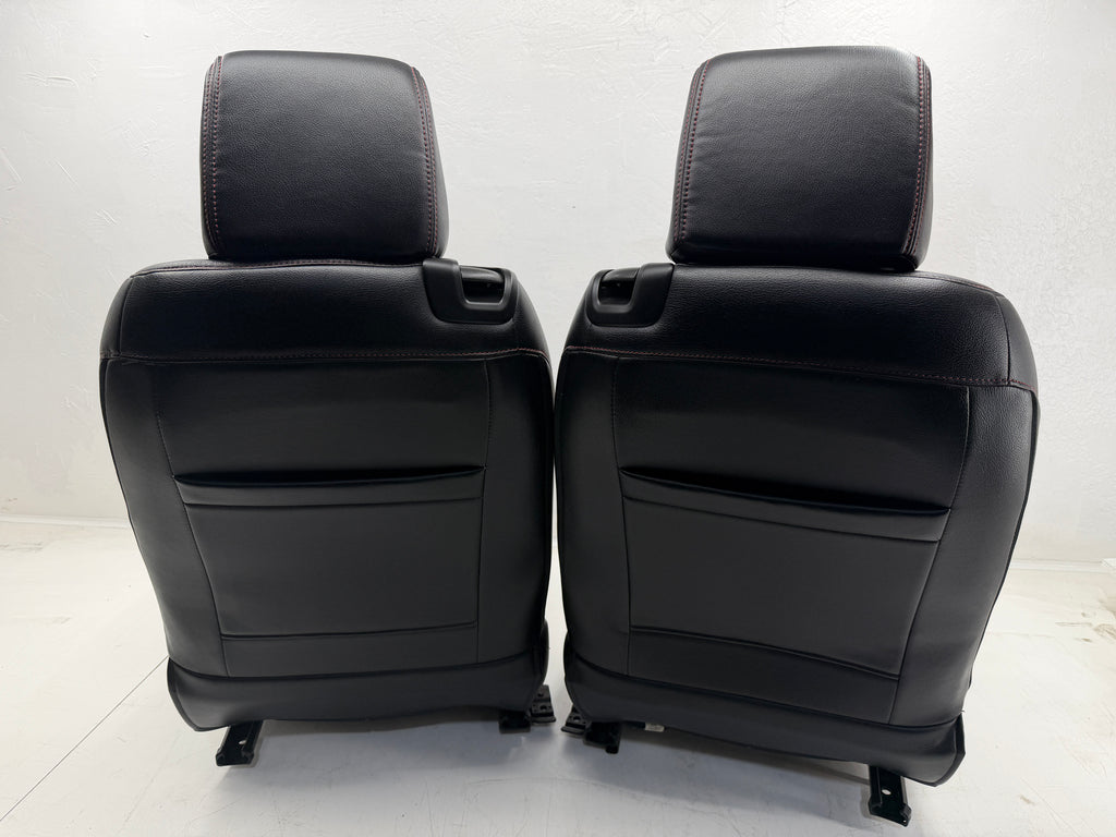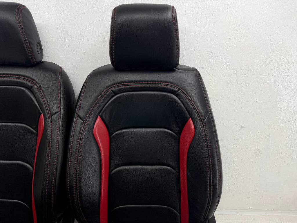 Chevy Camaro Seats 6th Gen are Jet Black Katzkin Leather with Red Accents and stitching.