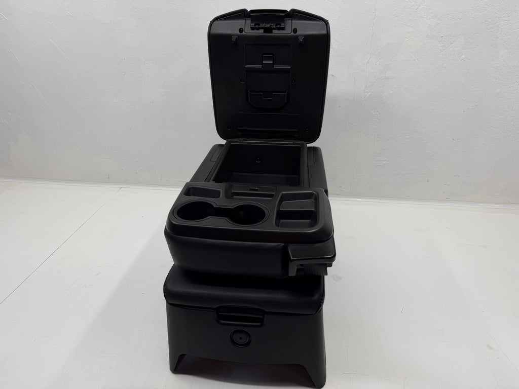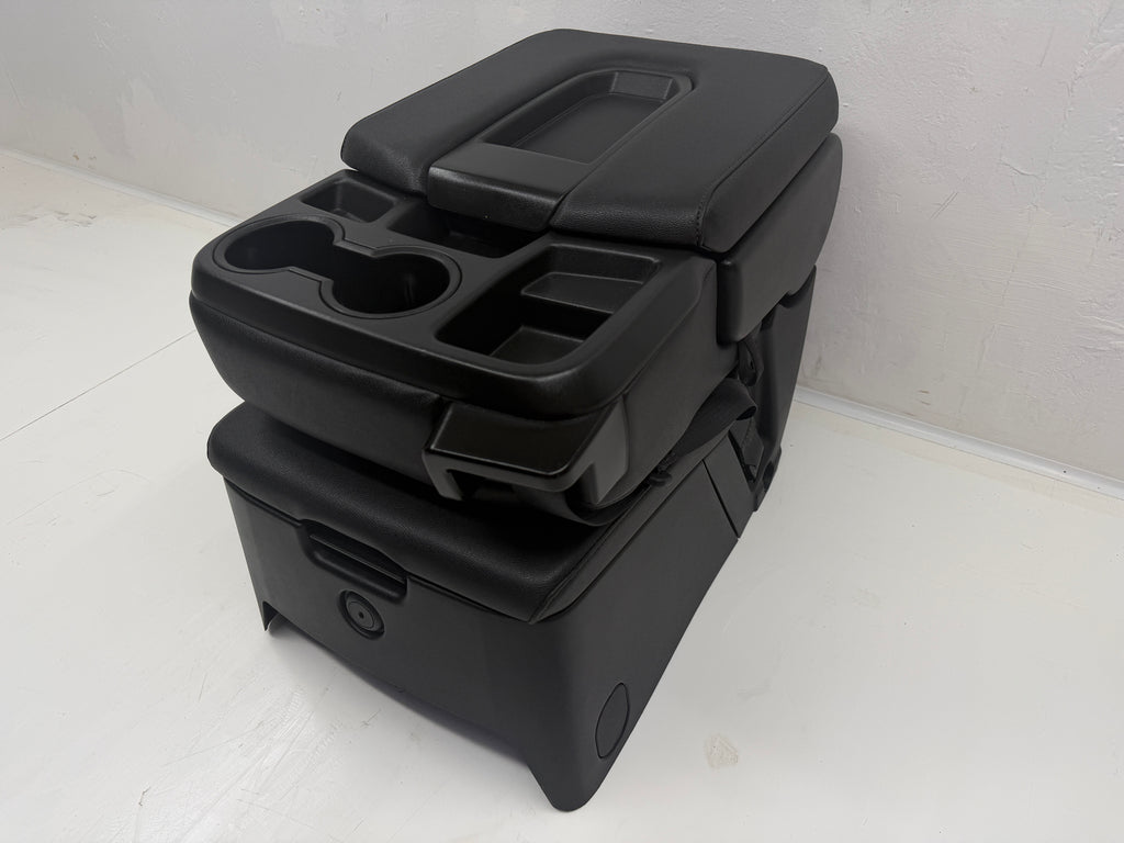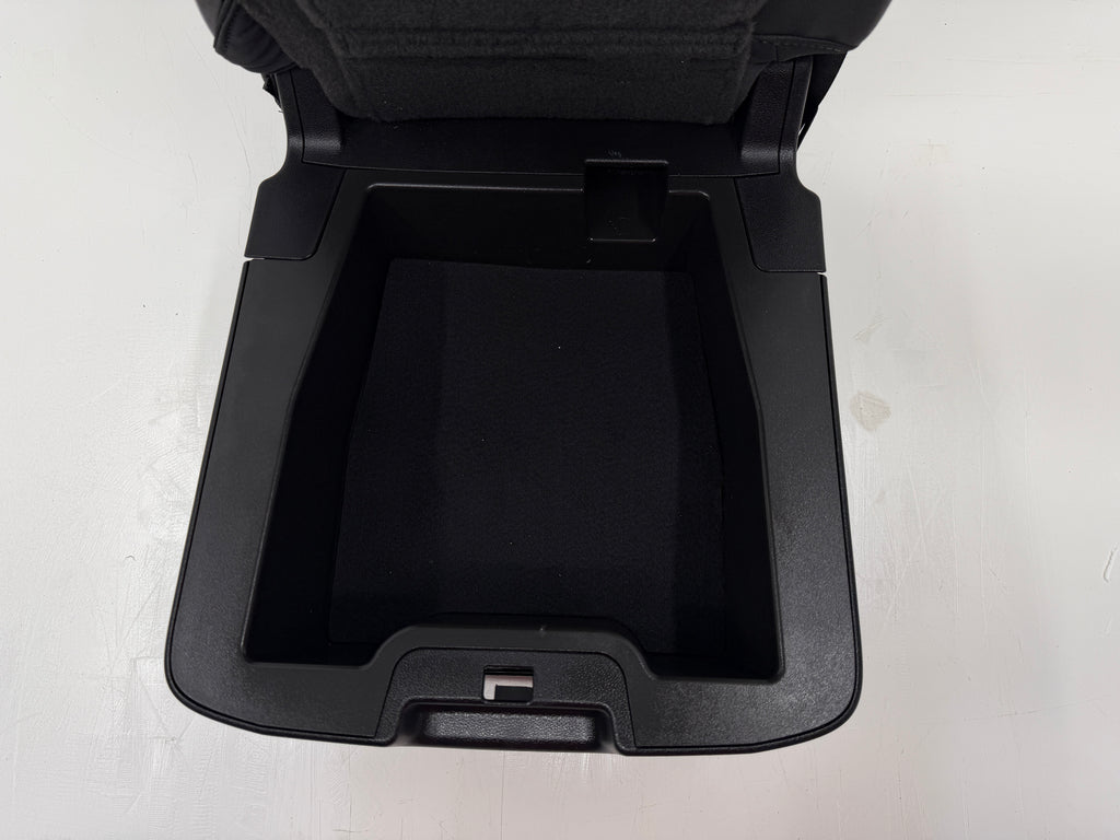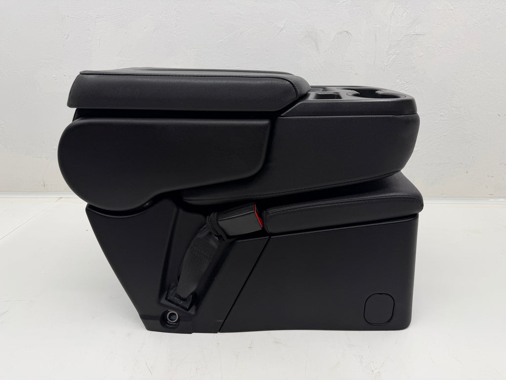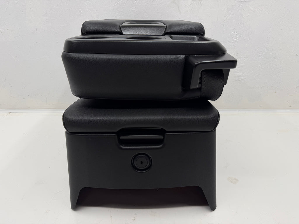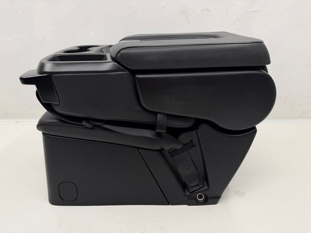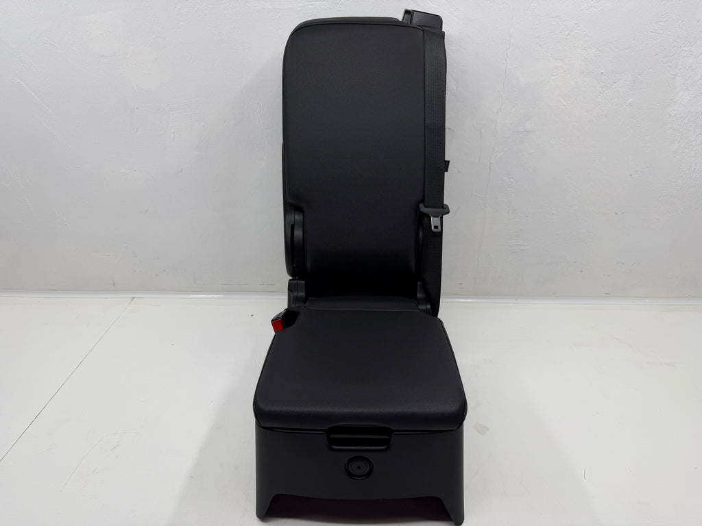 2019-2025 Chevy Silverado Jump Seat, Black in color GM OEM Ebony Leather and vinyl with upper and lower Storage.