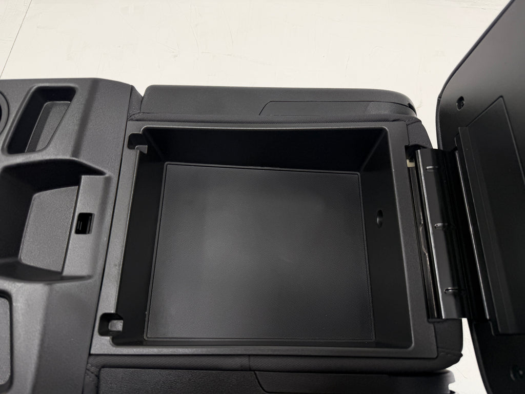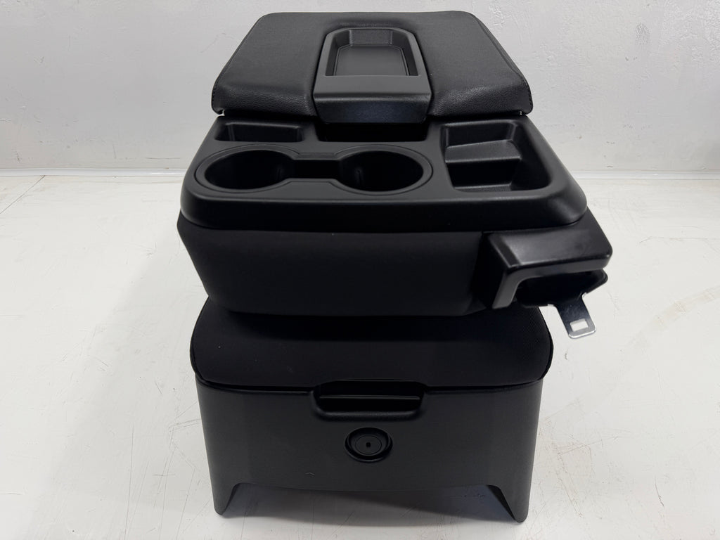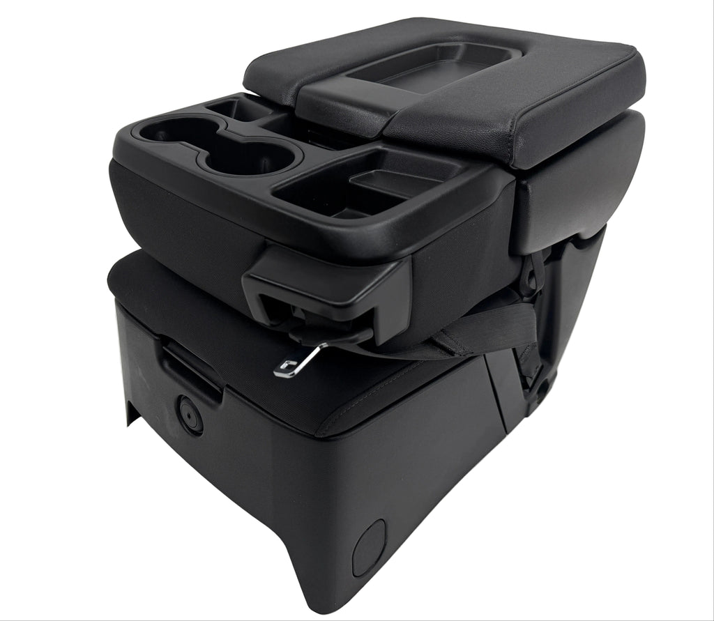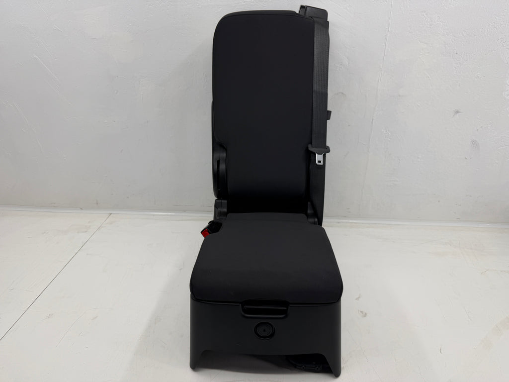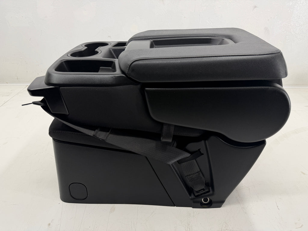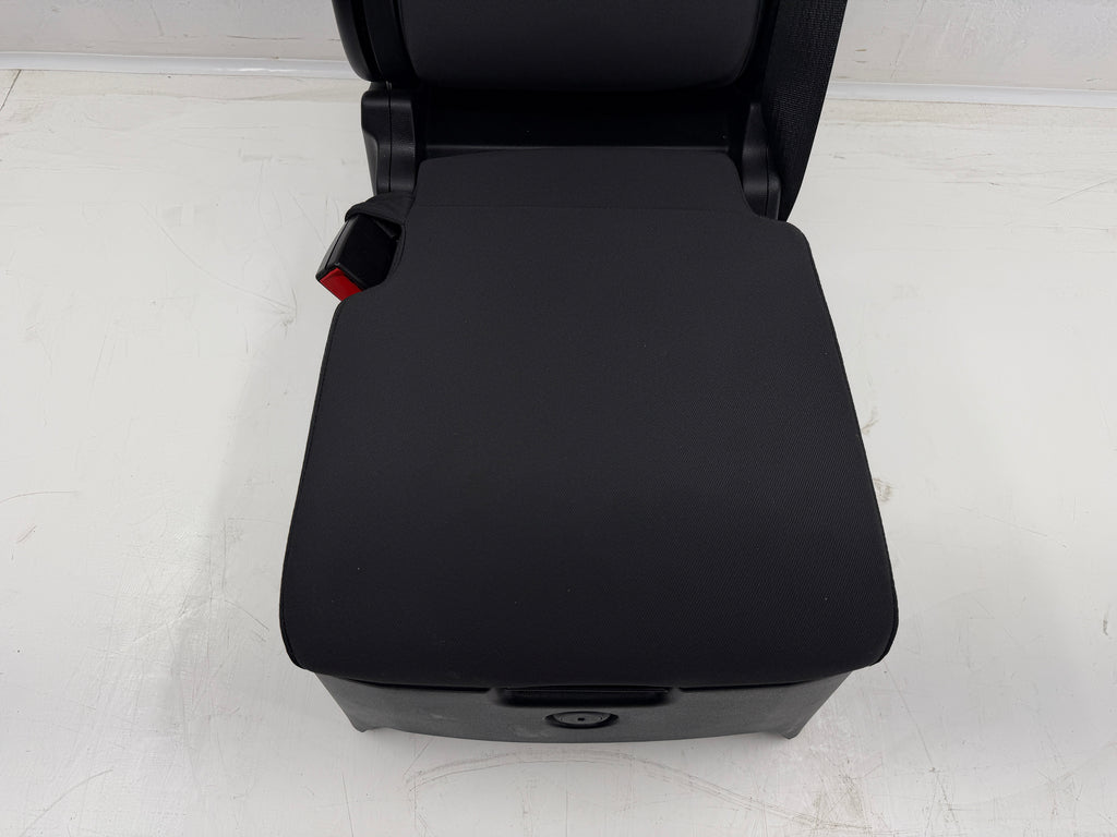 Chevy Silverado Truck black cloth Jump Seat, with upper and lower storage, 3 point seat belt, 2 cup holders and rear USB ports. Fits GMC Sierra.