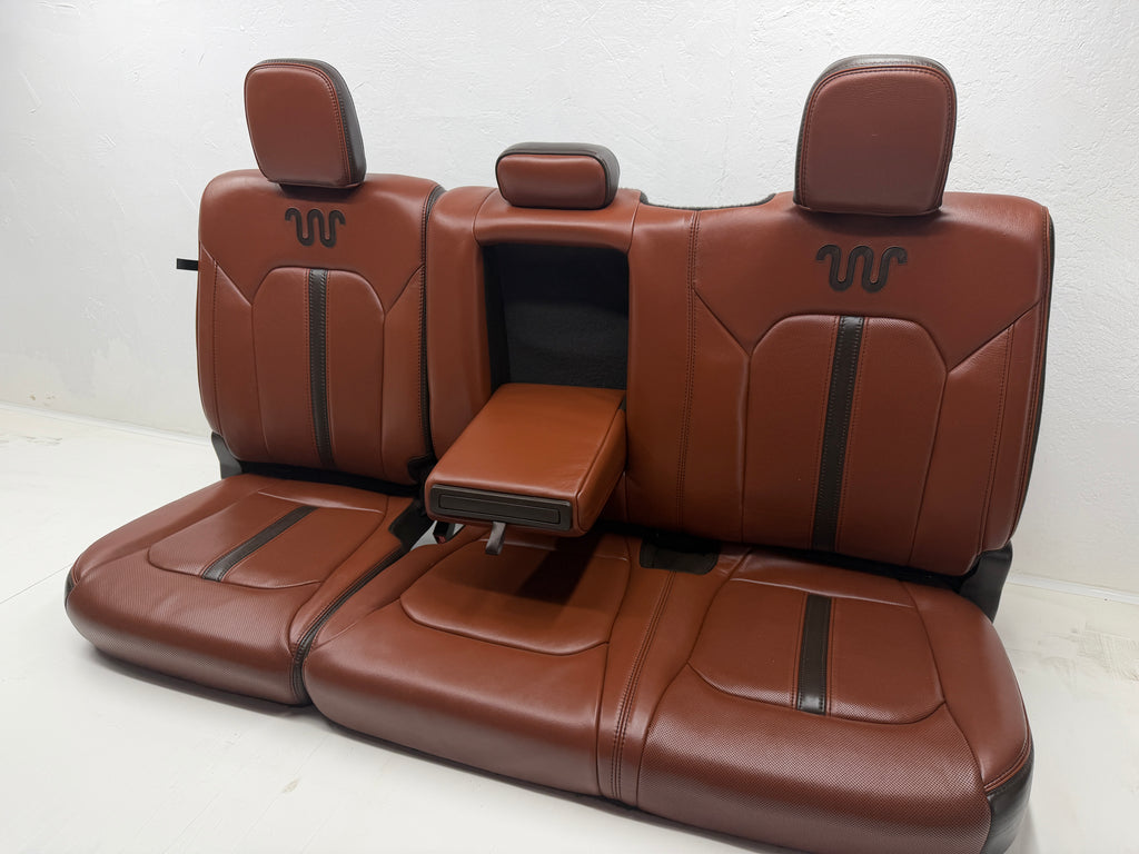 King Ranch Edition Rear seat, it is Mesa Brown in color with a brown vertical Center stripe and the Flying W Logo. It is in excellent condition.