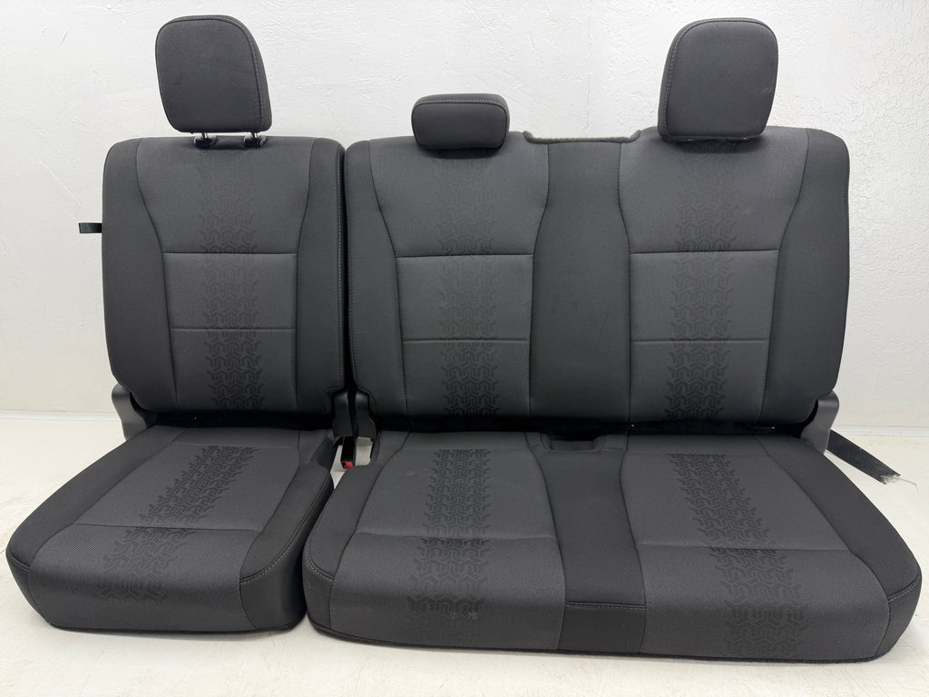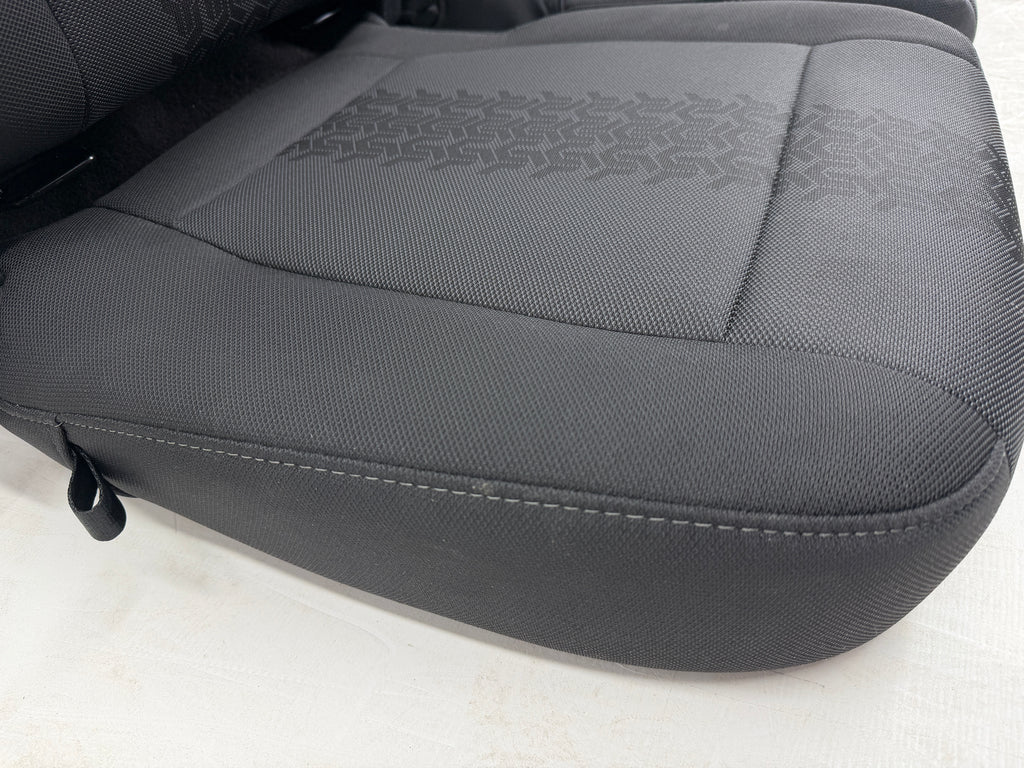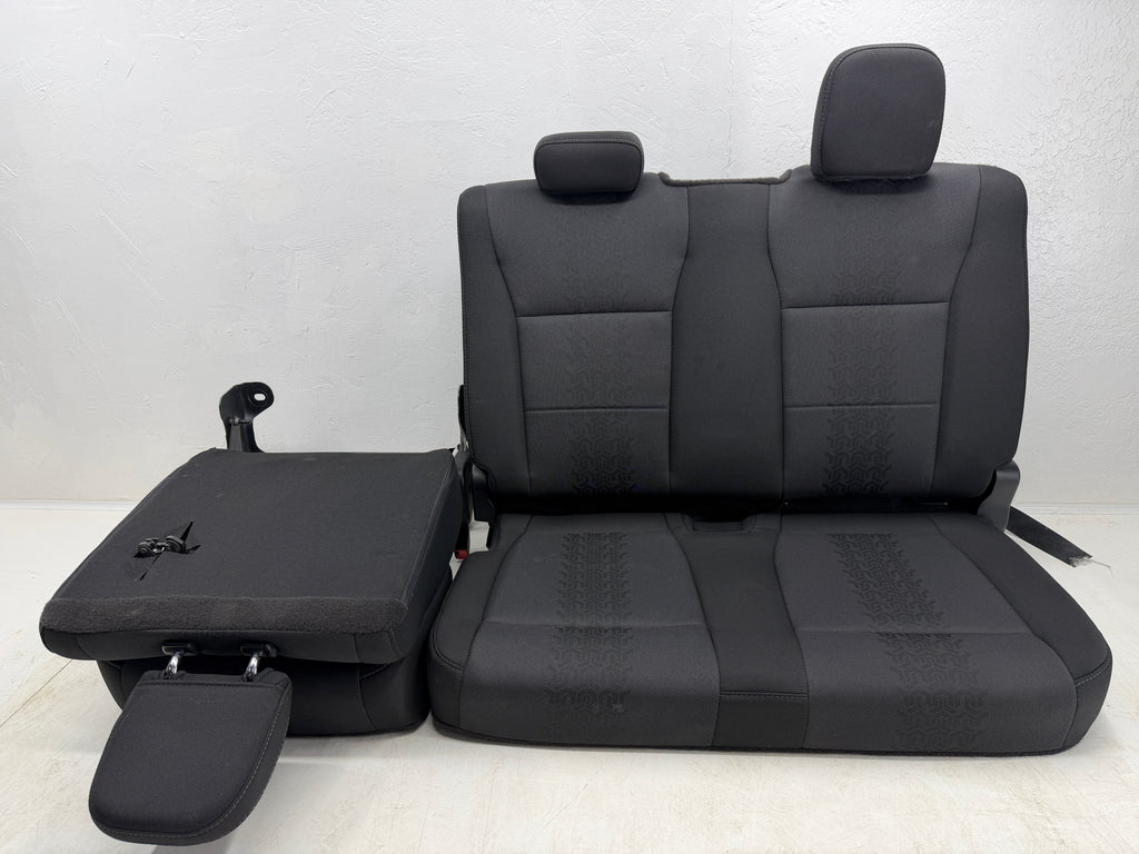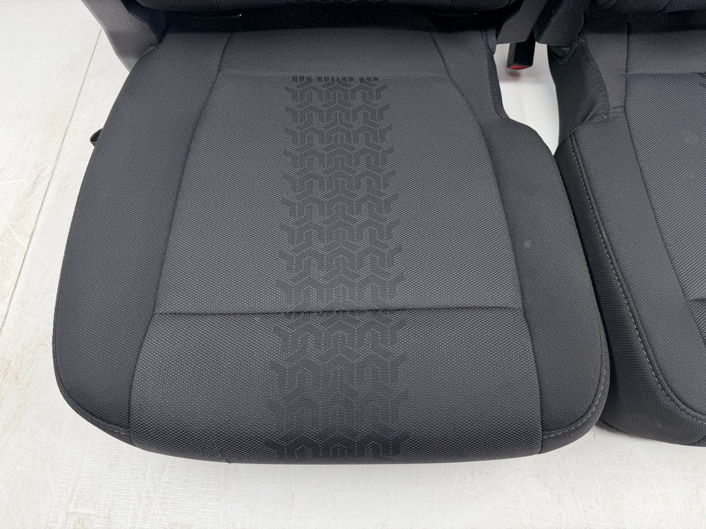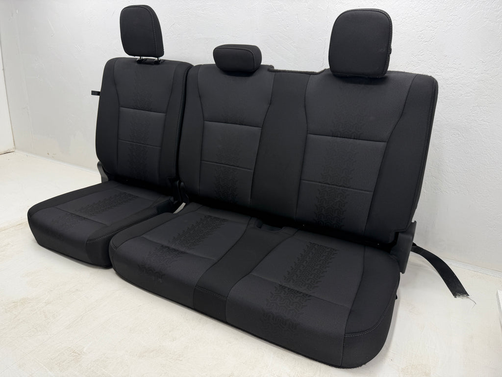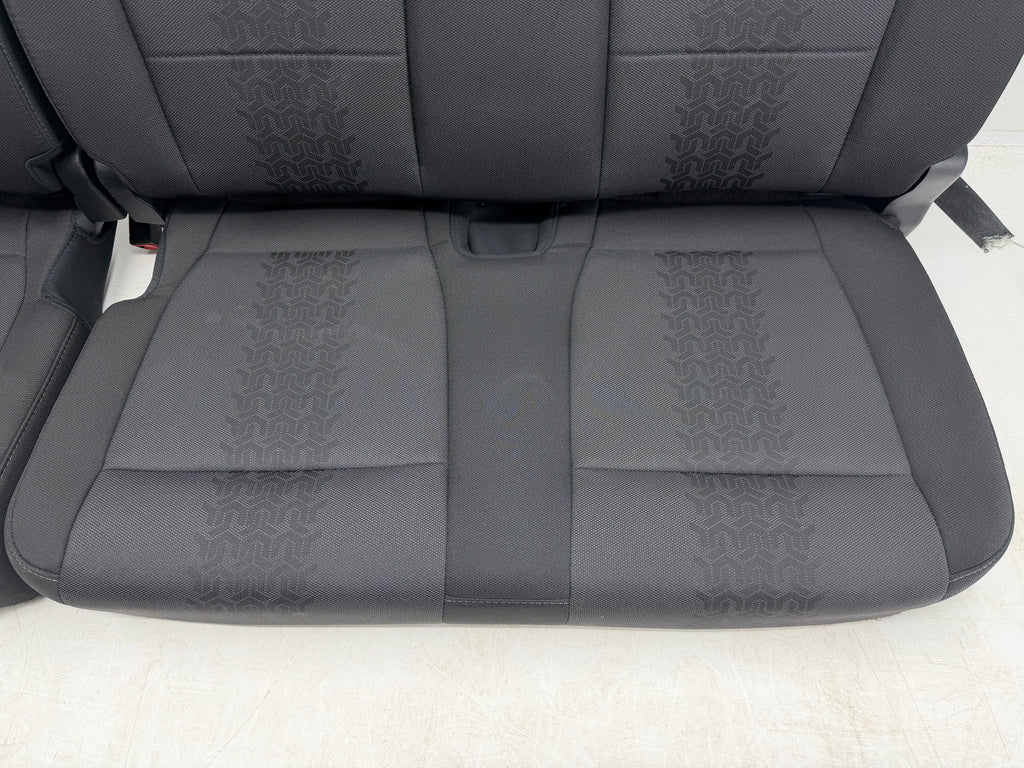 Ford F150 Cloth Rear Seats, Crew Cab cloth seats.They are black in color with a patterned insert.The passenger side folds forward for back of seat storage.
