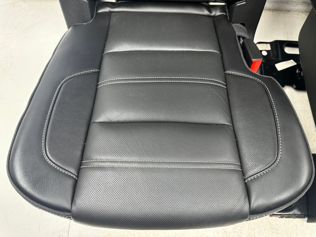 Yukon Denali XL Black leather 2nd row seats, with perforated leather inserts. They are in excellent condition. They have the Denali cloth piping, power tumble and are heated.