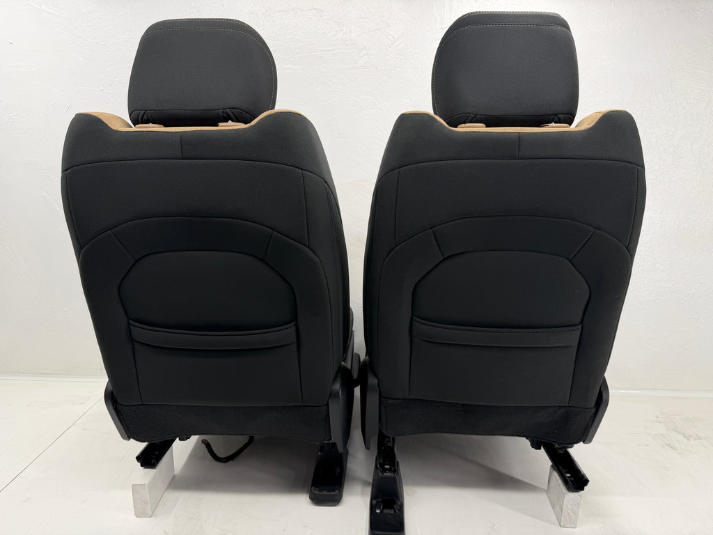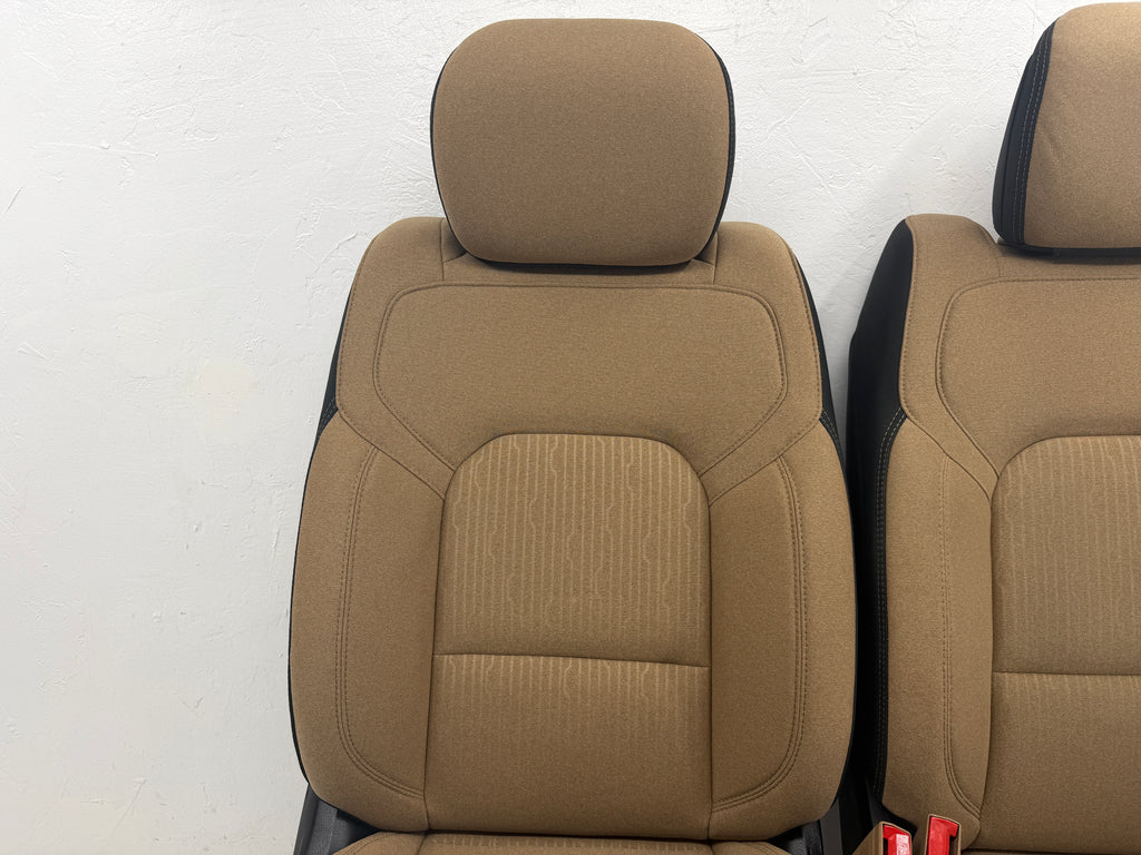 These seats were removed from a 2023 Ram 1500 with 44k miles, from the "Tan Cloth" interior, they are a Tan cloth with a patterned insert.