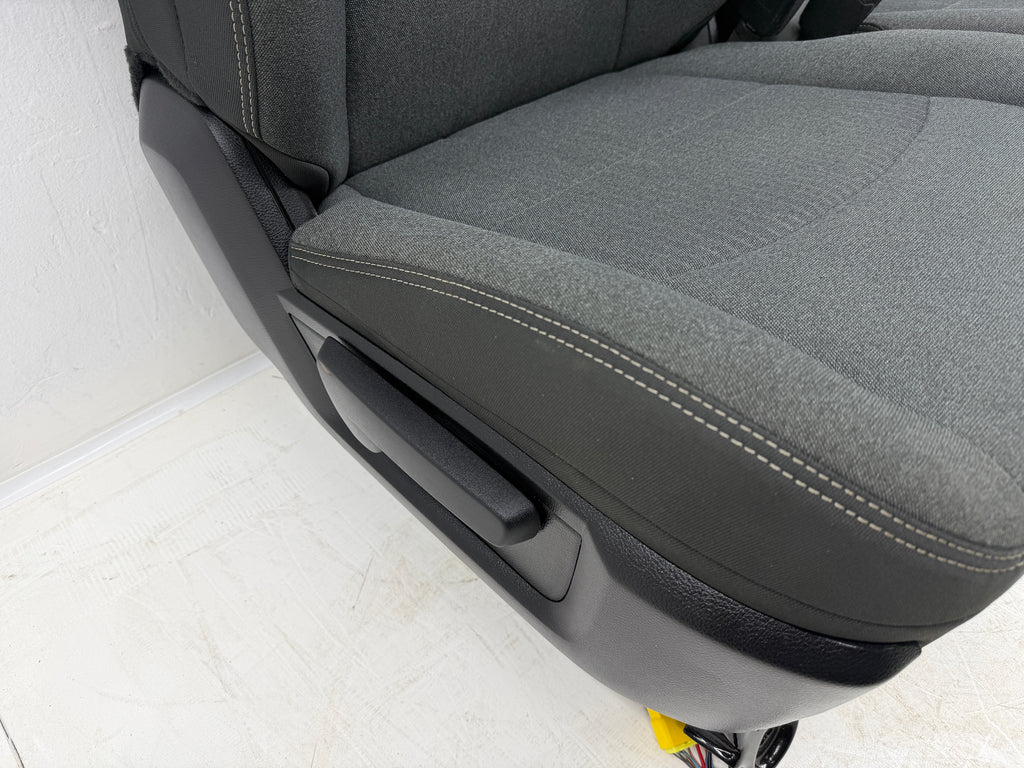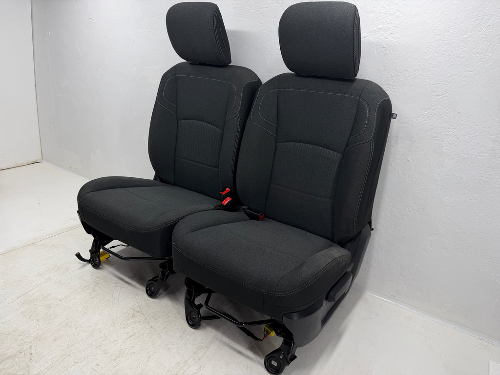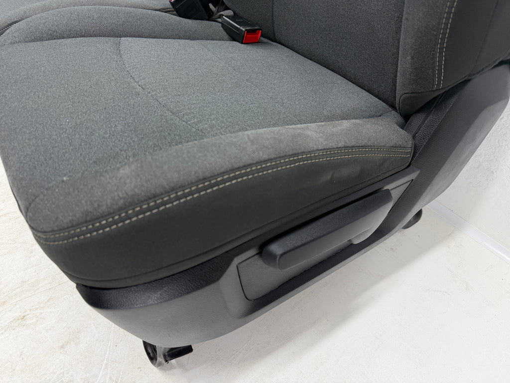 2019-2025 Ram 2500 HD from the New Style "Premium Black Cloth" interior, dark grey & black cloth with a patterned insert. Features Manual Driver & Passenger Seat track.