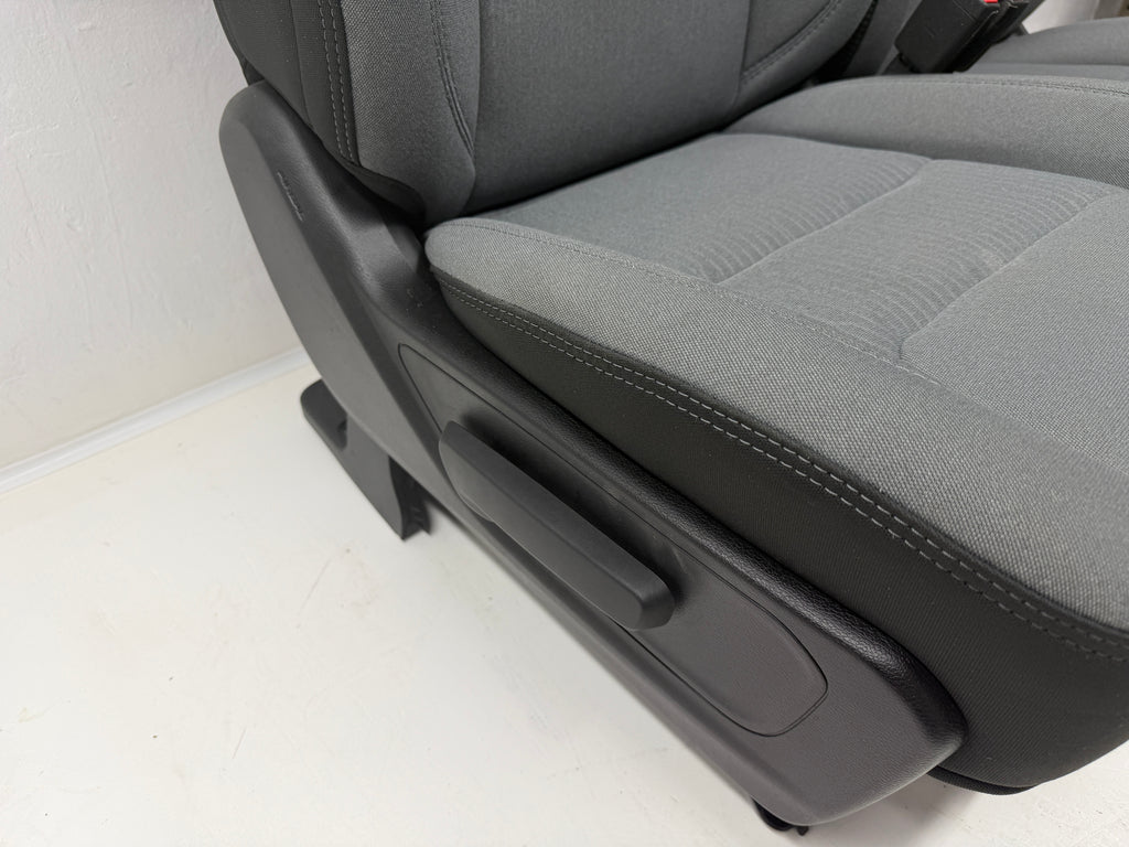 Ram 1500 DT Seats, from the "Gray Cloth" interior, they are a gray cloth with a patterned insert. Great Condition. Drivers is powered with powered Lumbar.