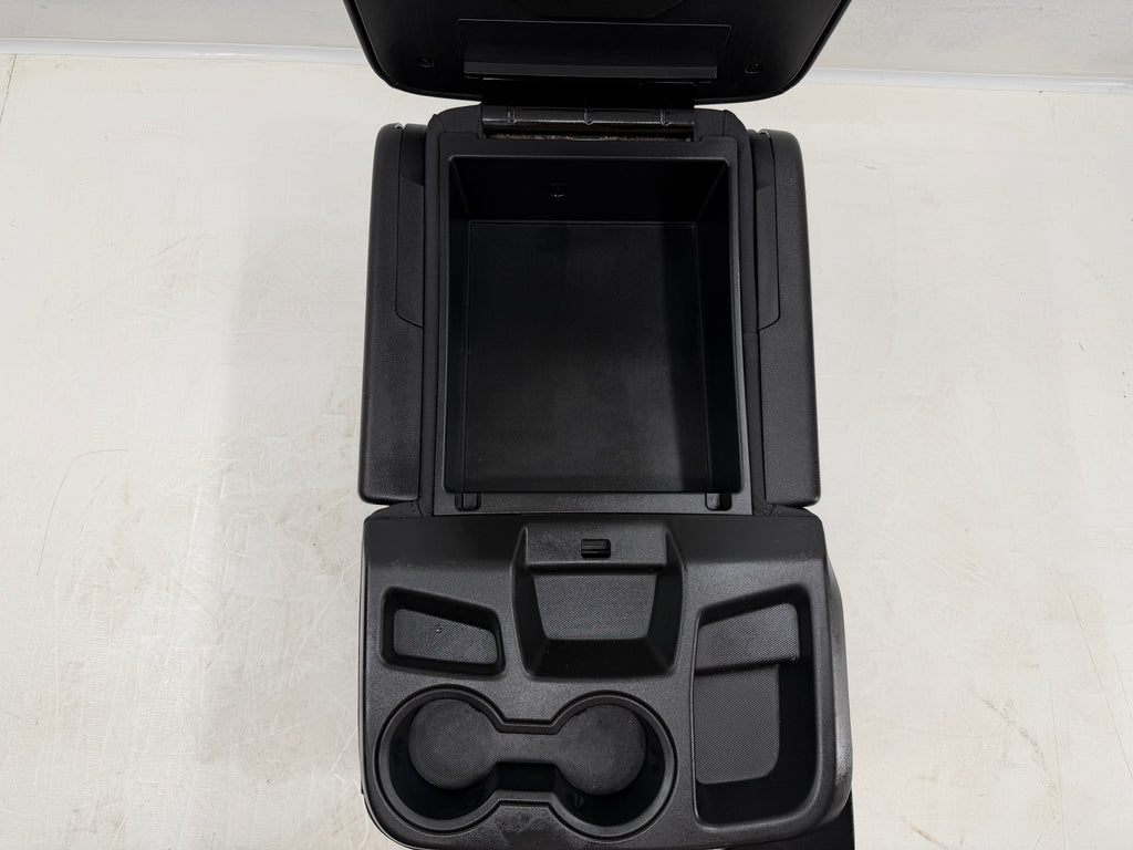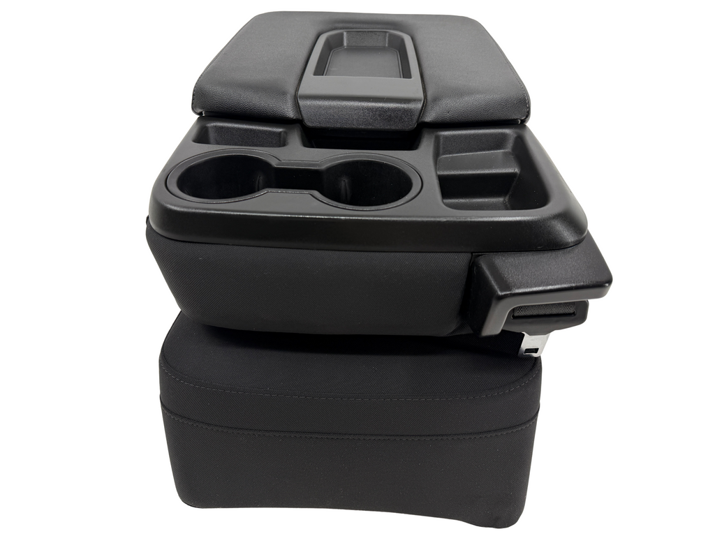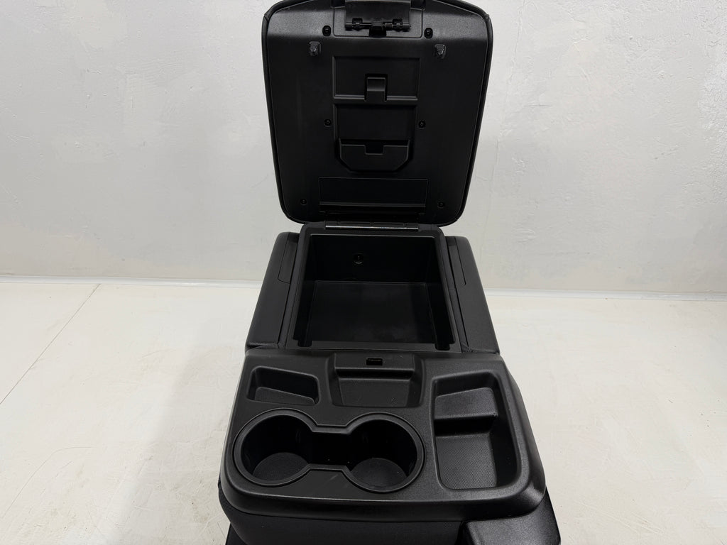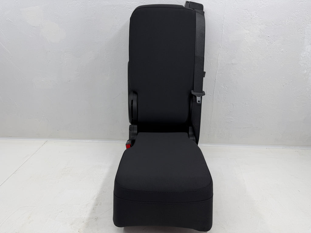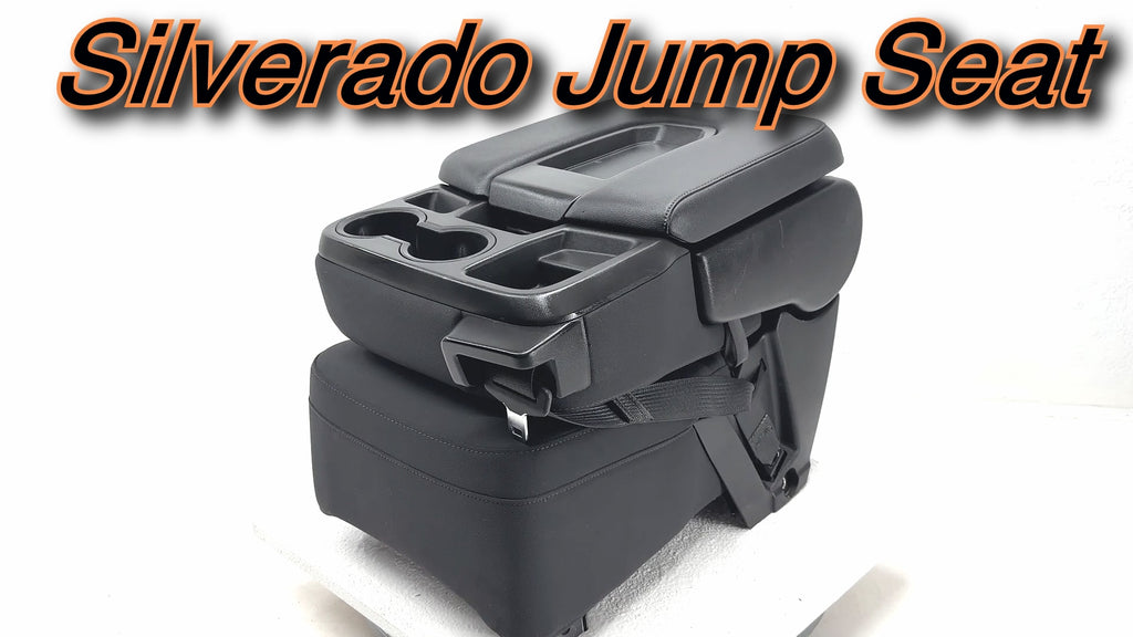 Chevy Silverado Jump Seat, Black in color and Cloth material, with Top Storage, 2 cup holders and 3 point seat belt.